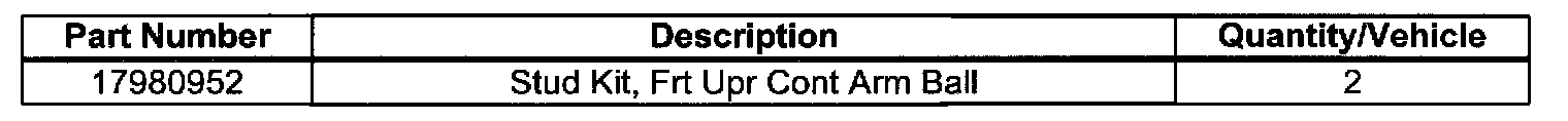 Parts required to complete this special policy are to be obtained from General Motors Service Parts Operations (GMPSO).