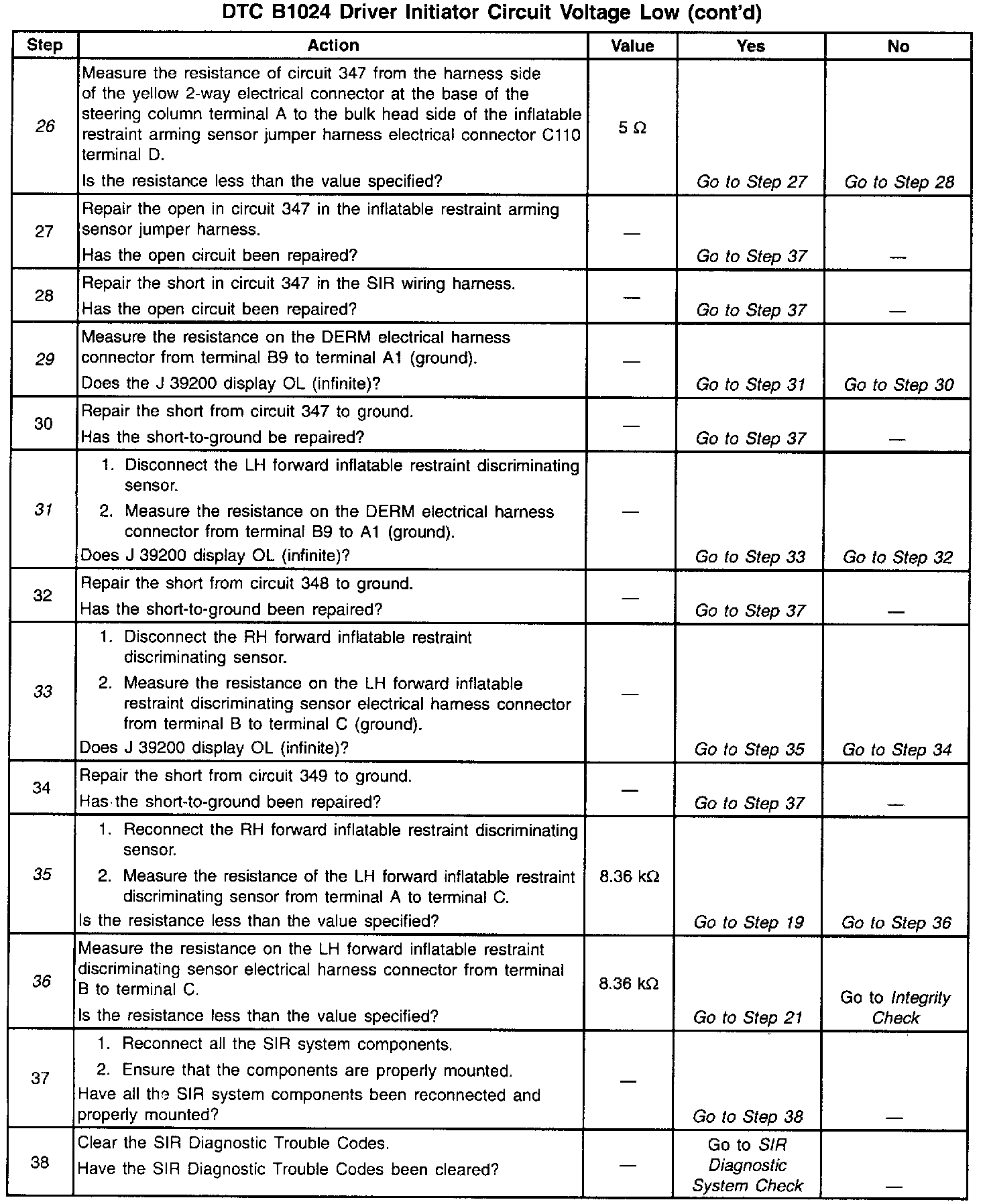 When measurements are requested in this table, use J 39200 Digital Multimeter with correct terminal adapter from J 35616-A Connector Test Adapter Kit. When a check for proper connection is requested, refer to Intermittents and Poor Connections in Diagrams. When a wire, connector or terminal repair is requested, use J 38125-A Terminal Repair kit and refer to Wiring Repair.