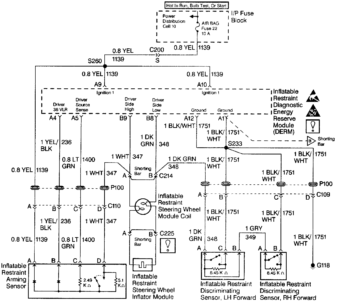 Water intrusion in either of the inflatable restraint discriminating sensors, an open in CKT 347 or a short to ground on CKT 347, CKT 348, or CKT 349 may also cause an intermittent condition.