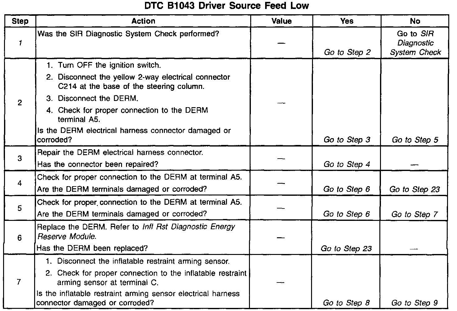 Refer to step numbers on the diagnostic table.