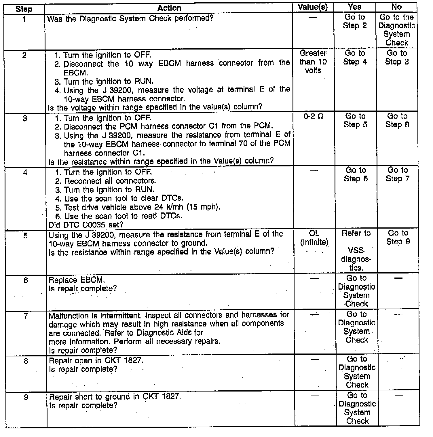DTC C0035 Rear Speed Signal Circuit Open Or Grounded (2.2L Engines Only):