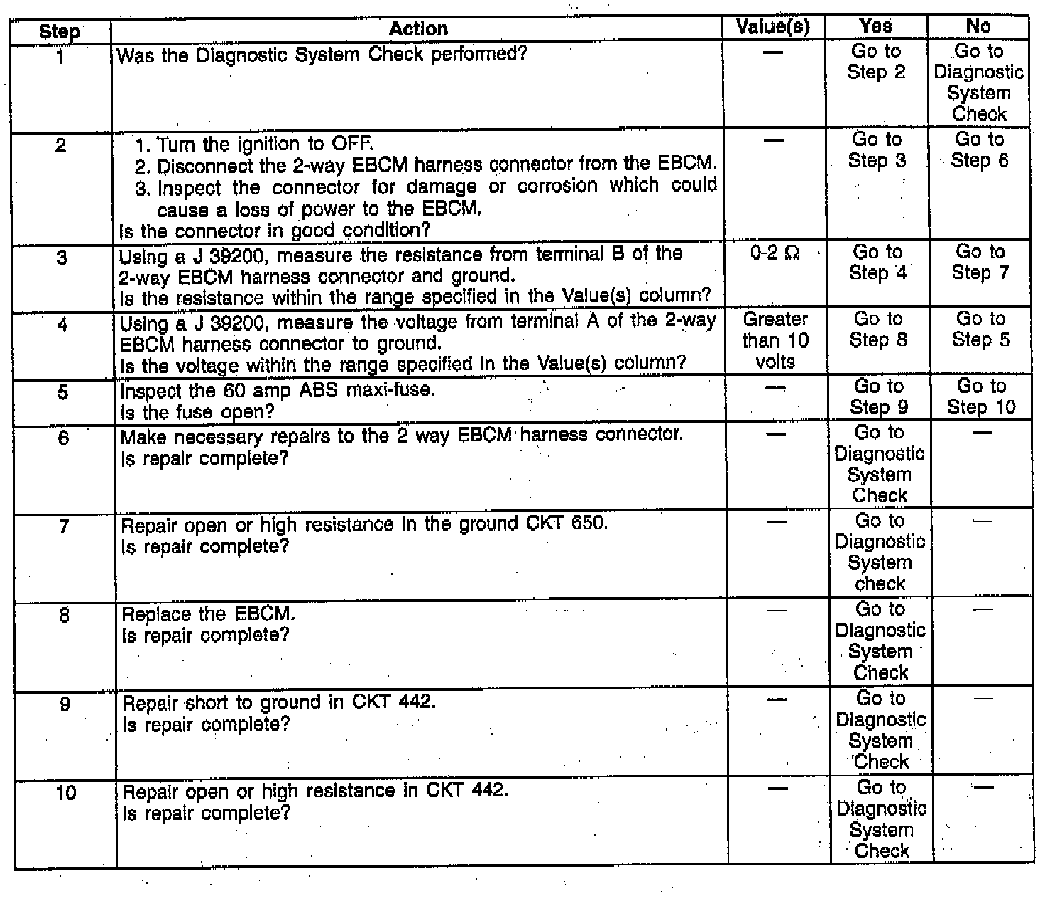 - Low voltage on EBCM solenoid driver circuit when expected to be high (solenoid not energized).