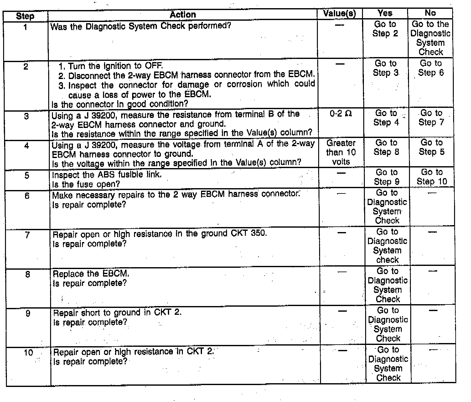 3. Check the ground circuits to the EBCM.