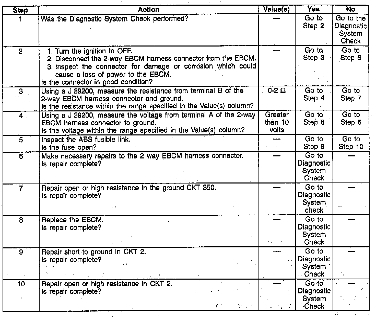 3. Check the ground circuits to the EBCM.