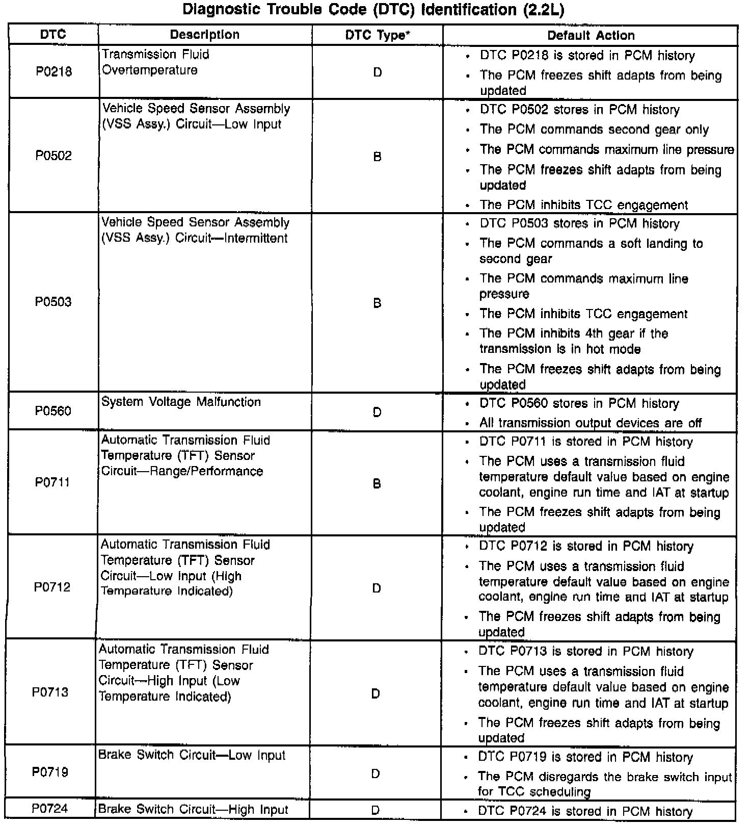 Diagnostic Trouble Code Descriptions