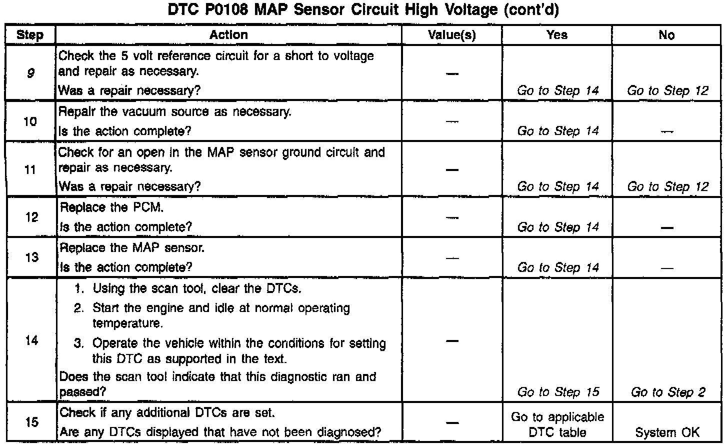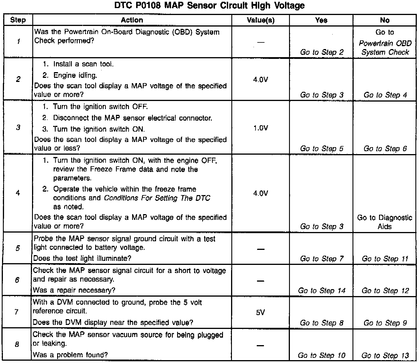 Whenever a DTC P0108 is intermittent, refer to Driveability Symptoms or to MAP Sensor Output Check for further diagnosis. MAP Sensor Output Diagnosis