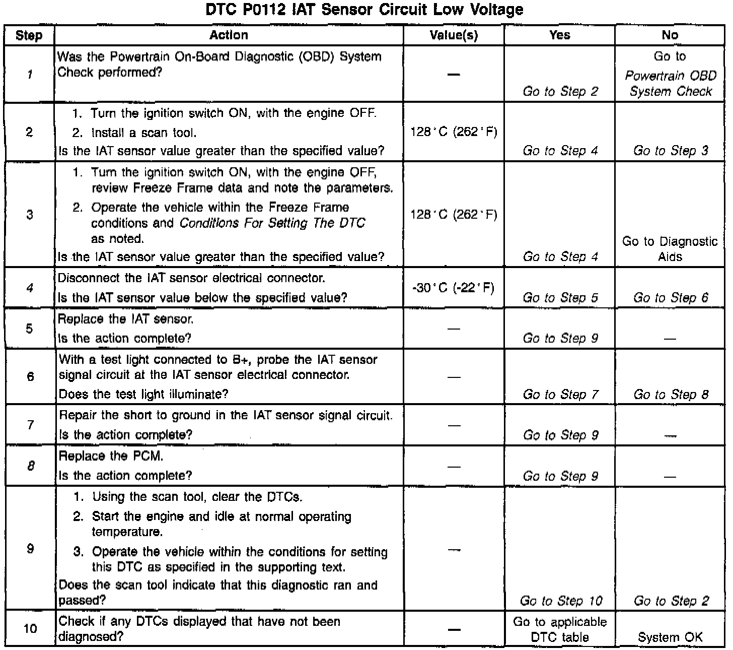 ^ The IAT sensor signal voltage indicates that the intake air temperature is greater than 128°C (262°F).