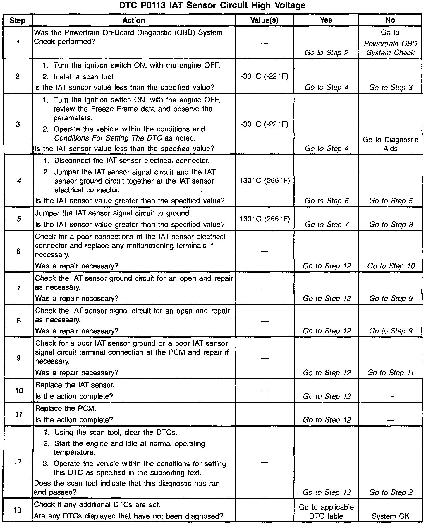 ^ The IAT sensor signal voltage indicates that the intake air temperature is less than -40°C.