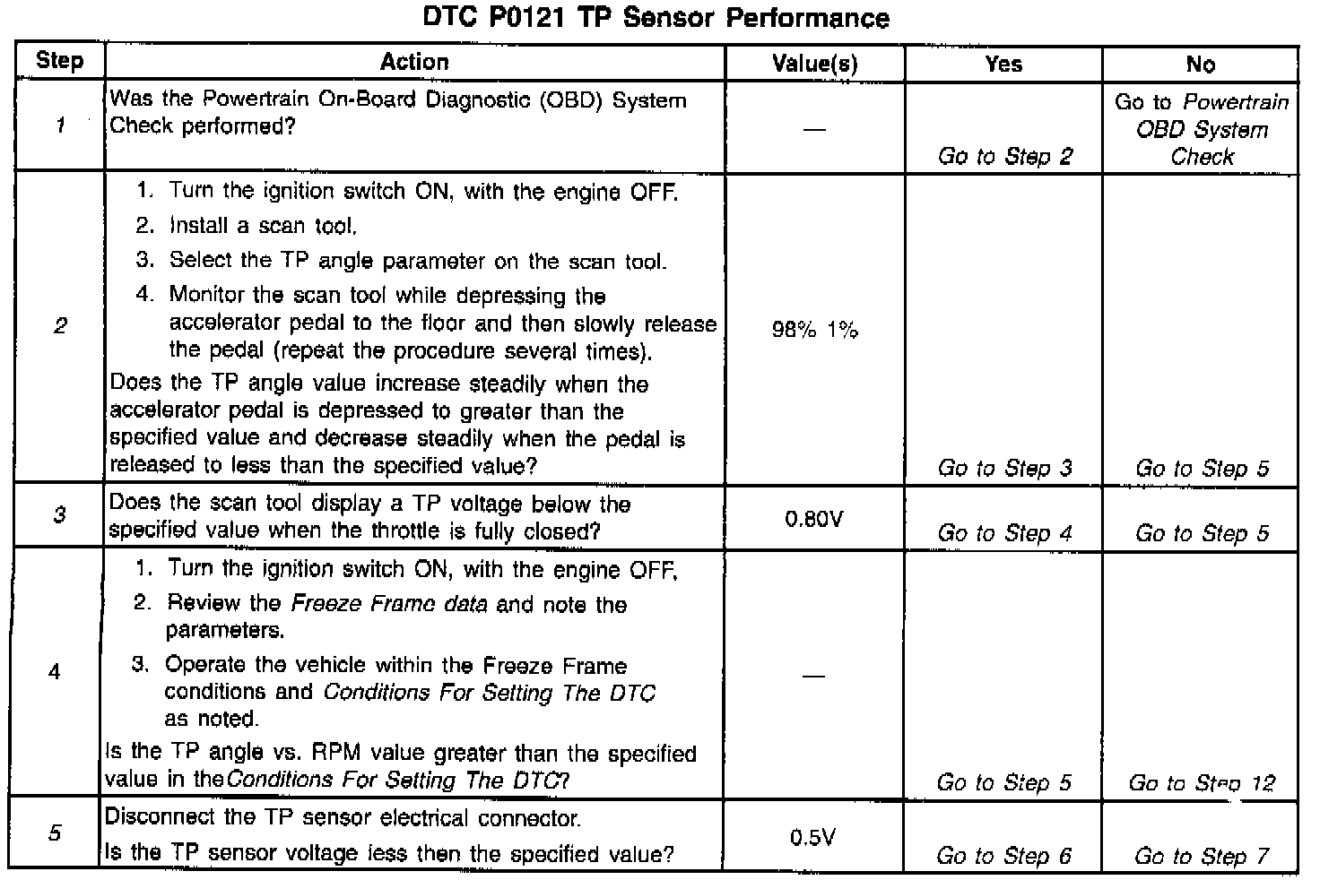^ If a DTC P0121 cannot be duplicated, the information included in the Freeze Frame/Failure Records data can be useful. Use the scan tool DTC information data to determine the status of the DTC.