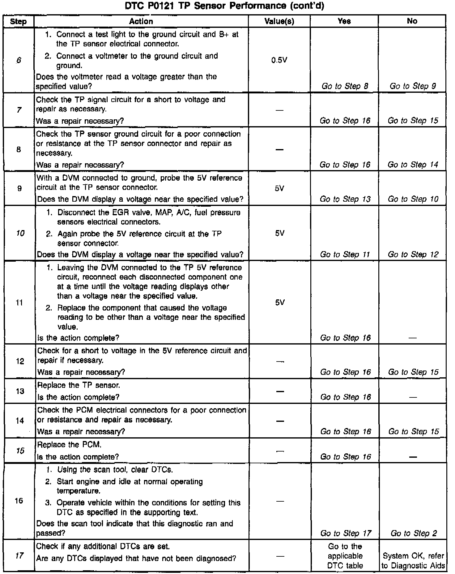 5. A disconnected TP sensor should not display a voltage reading on the scan tool. An amount less than the specified value is normal.