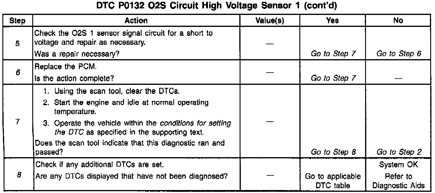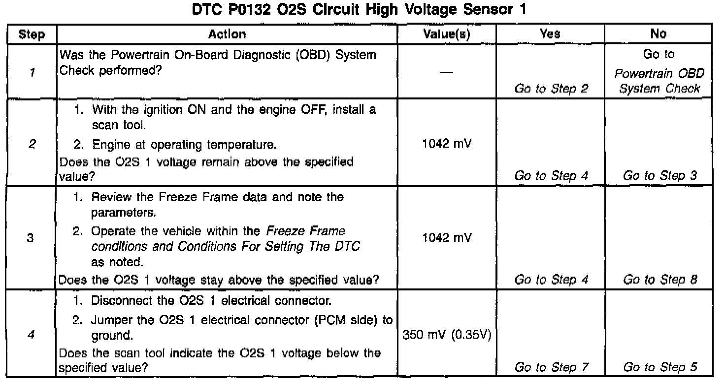 ^ A leaking injector - A leaking or faulty fuel injector can cause the system to go rich causing a DTC P0132. See Injector Coil Test Procedure. Refer to the Fuel Injector Balance Test and Fuel Injector Coil Test. Testing and Inspection
