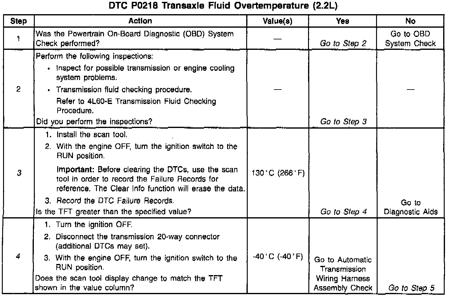 When the PCM detects a high transmission temperature for a long period of time, then DTC P0218 sets. DTC P0218 is a type D DTC.