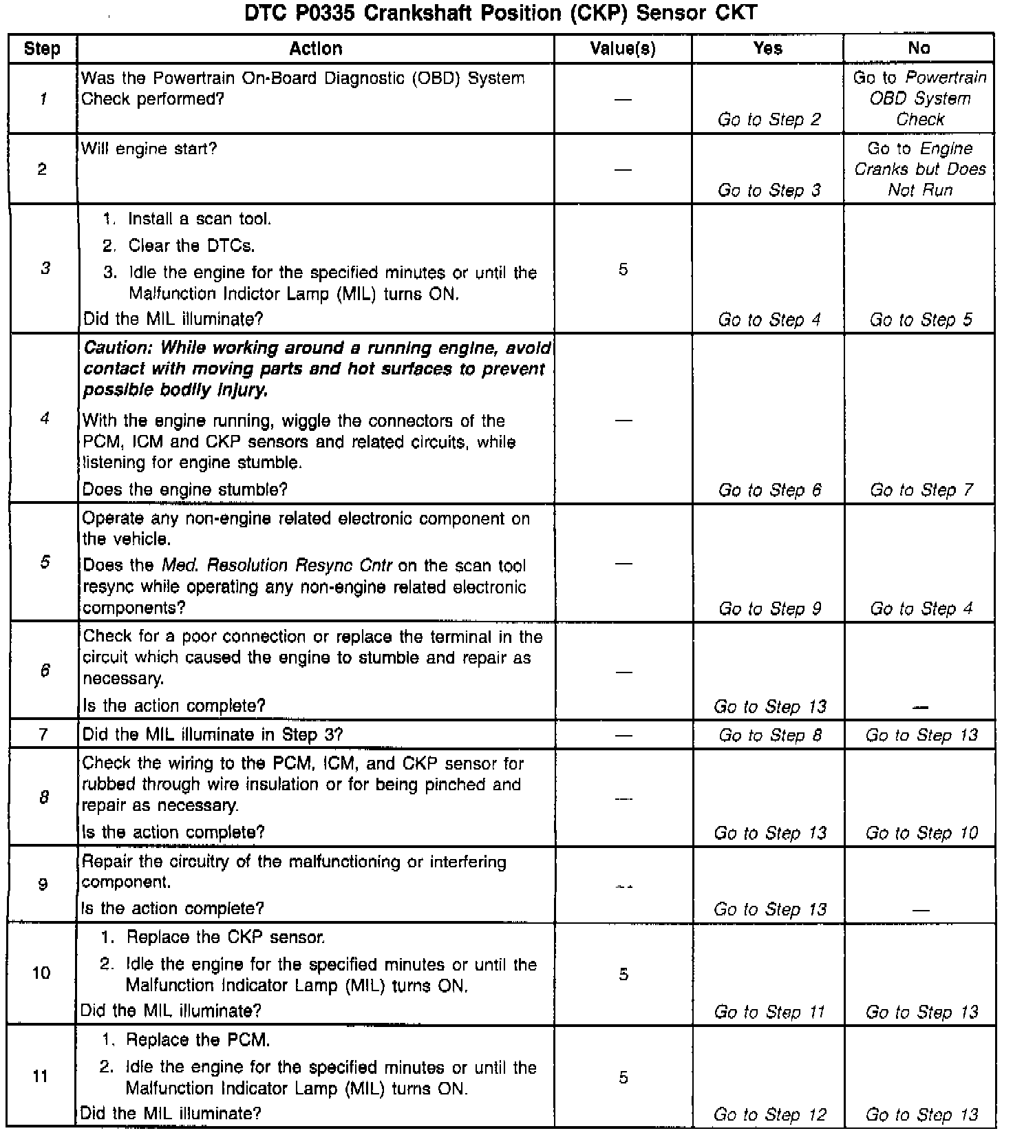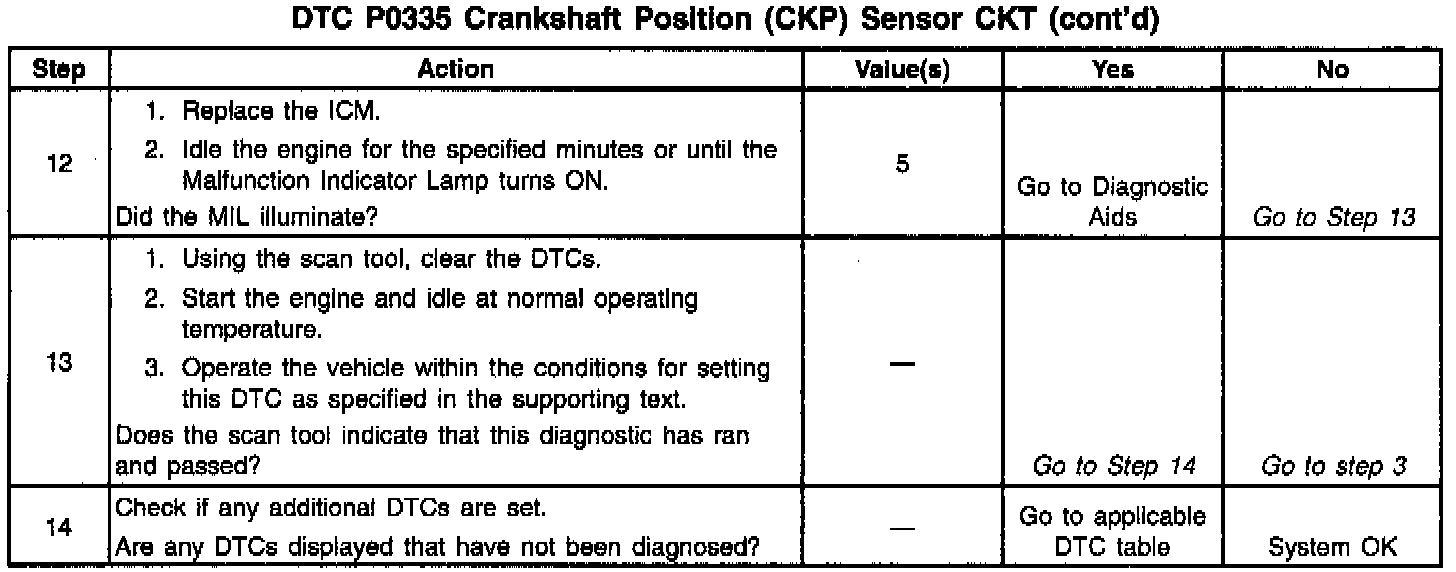 ^ If the complaint was Cranks But Will Not Run, the DTC P0335 may set when attempting to start the engine more than 15 times and the ignition is not turned OFF between the attempts.