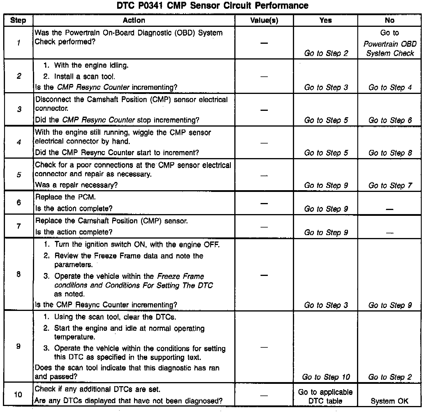 5. A poor connection in any of the circuits at the CMP sensor will cause the CMP Resync Counter to increment. Anytime a poor connection is present, the CMP Reference Activity counter will stop incrementing and the CMP Resync Counter will increment.