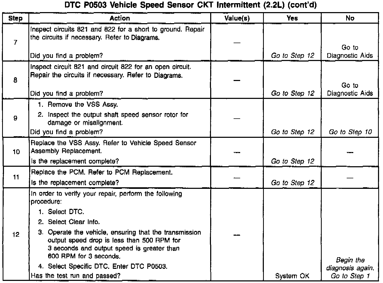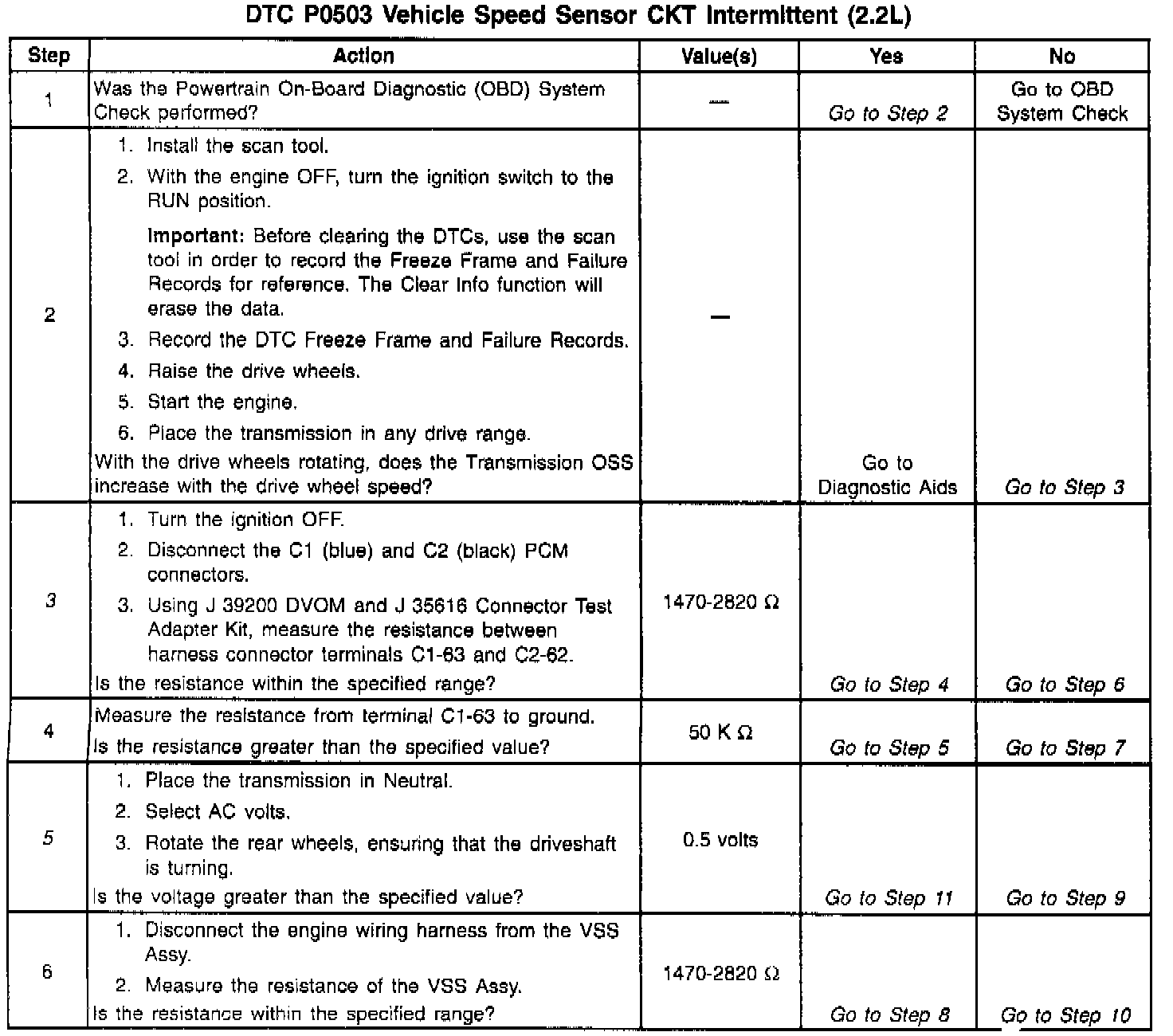 When the PCM detects an unrealistic large drop in vehicle speed, then DTC P0503 sets. DTC P0503 is a type B DTC.