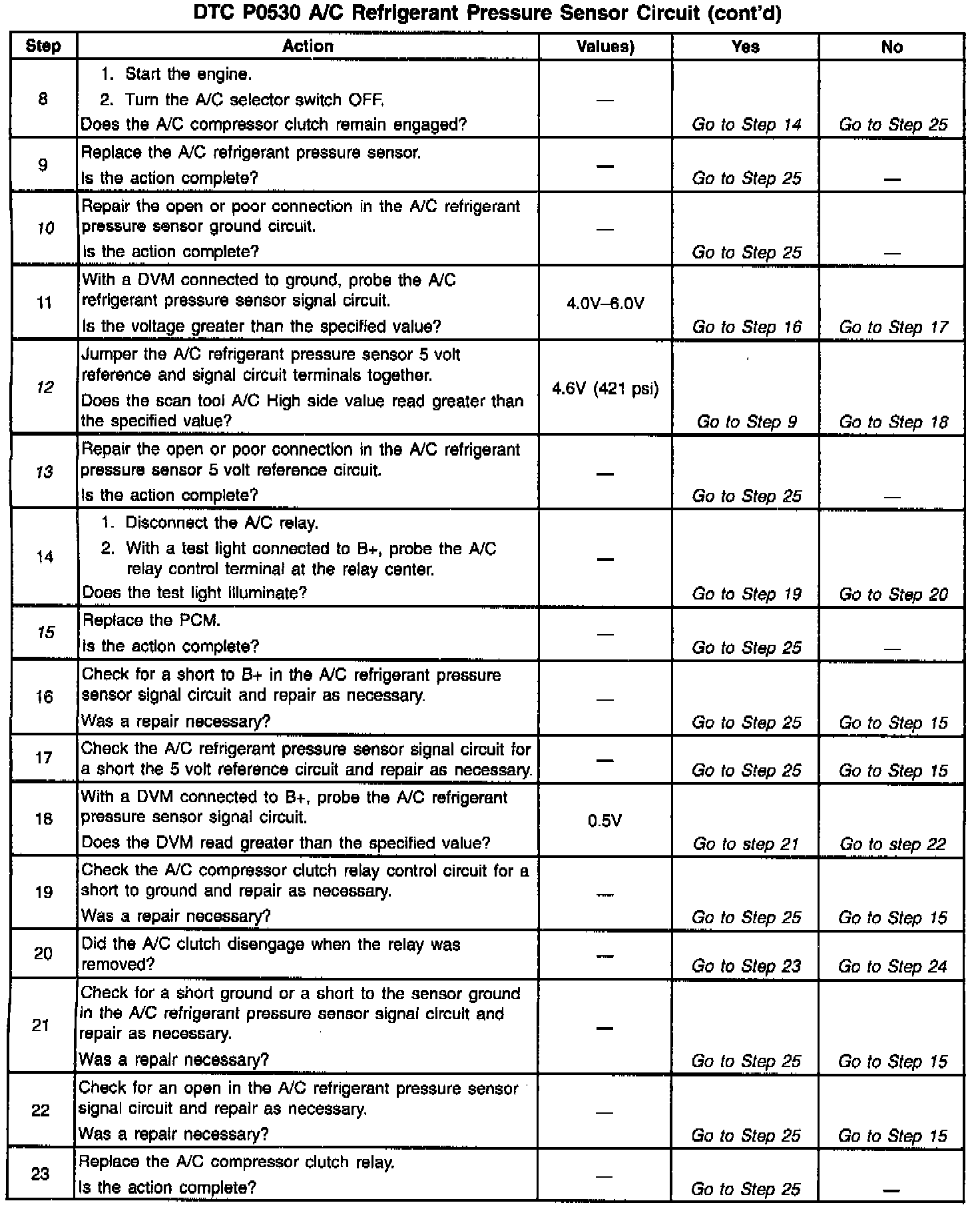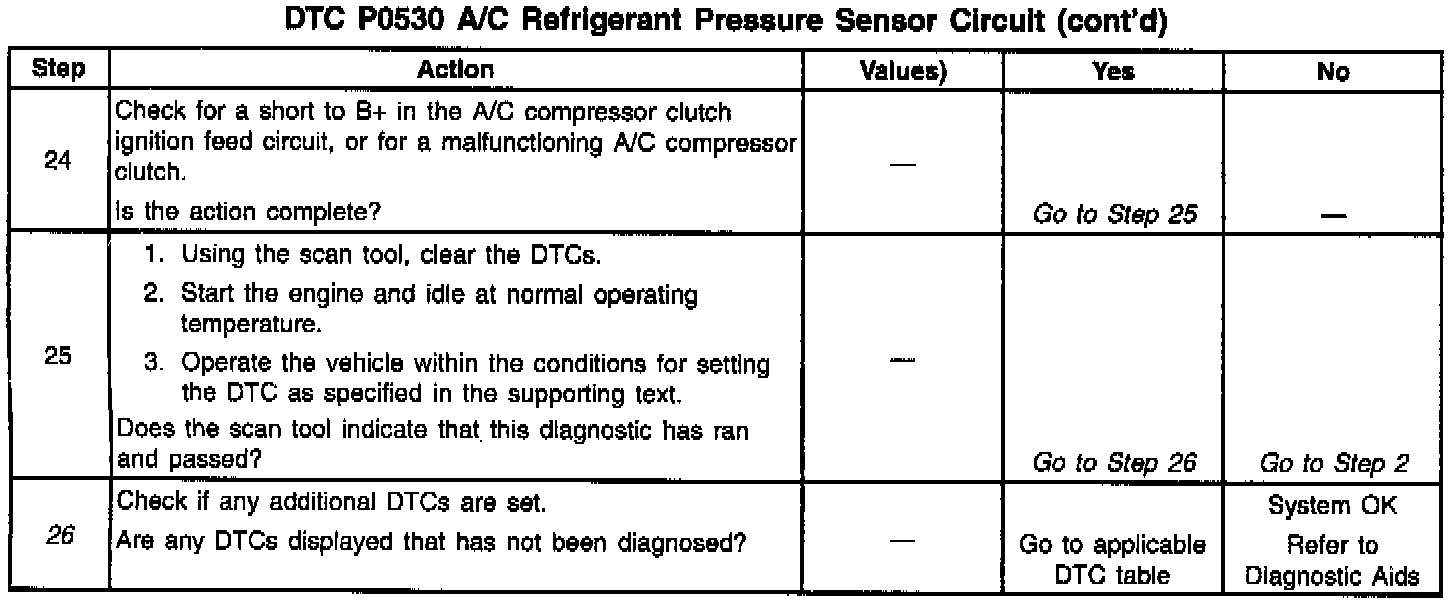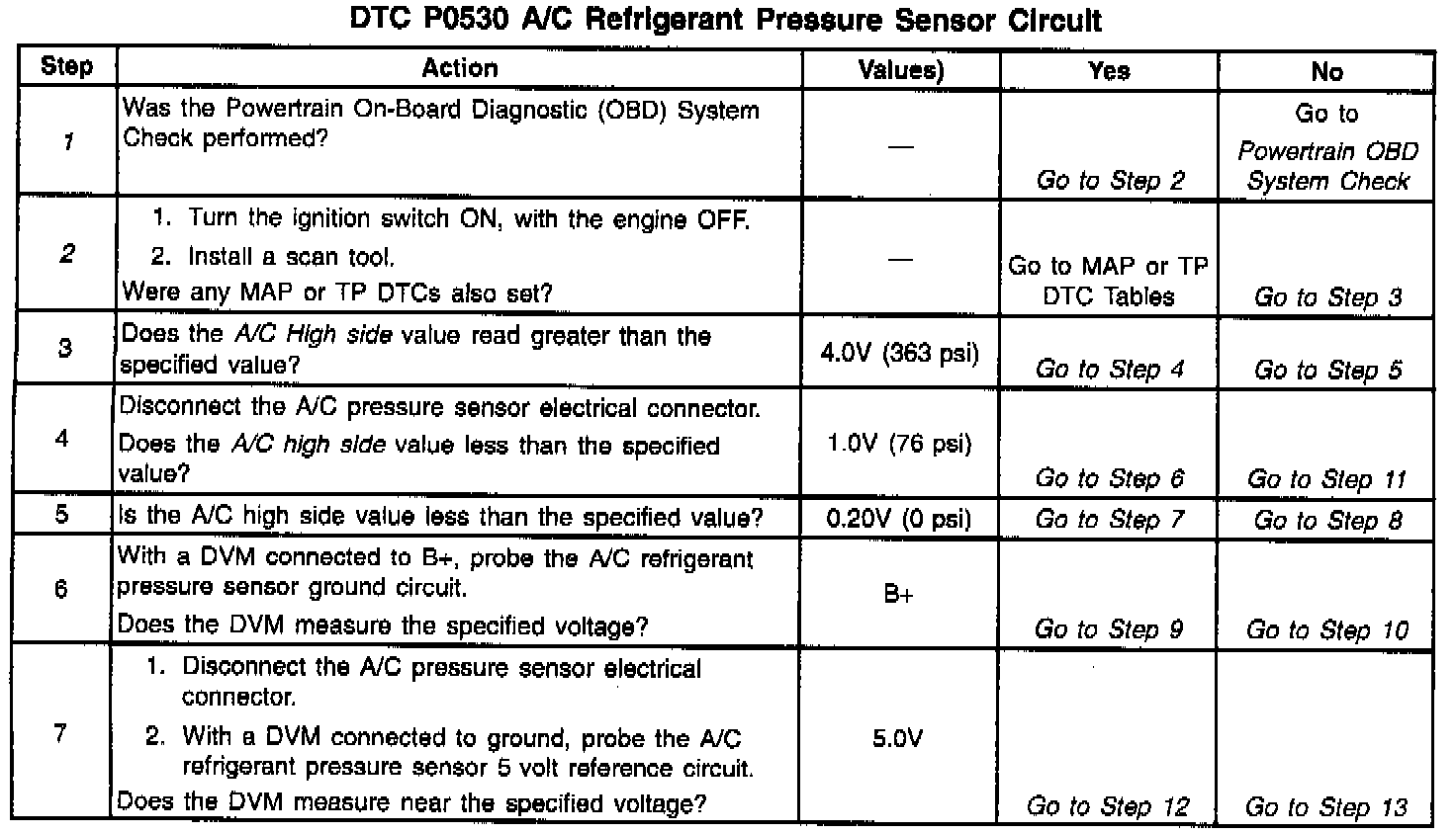 ^ The DTC P0530 sets when the signal voltage falls outside the normal possible range of the sensor of the sensor. If the actual pressure of the A/C system matches the scan tool readings, repair any A/C pressure problems before using this table.