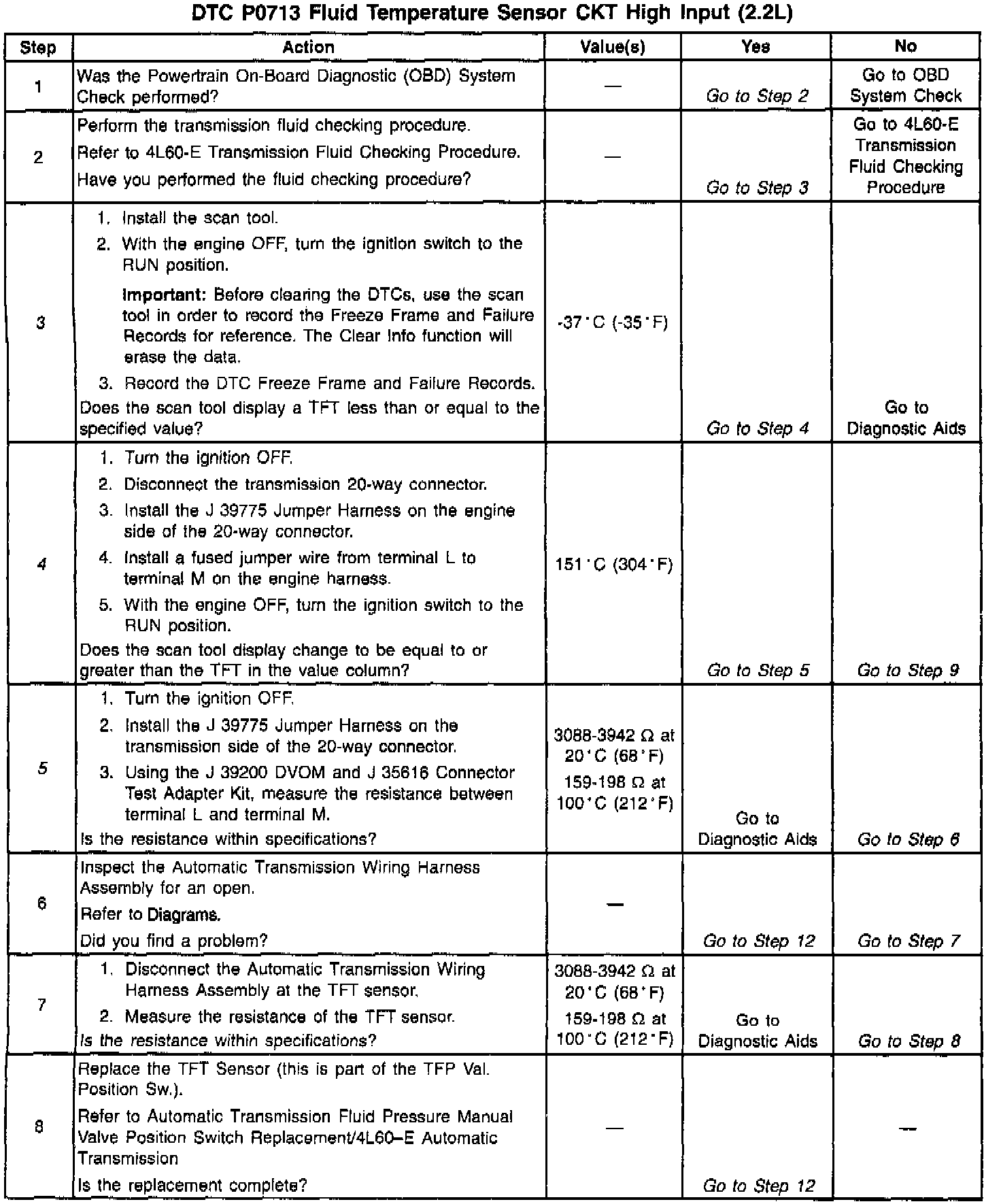 ^ Use the Temperature vs Resistance scale when testing the TFT sensor at various temperature levels. Test the TFT sensor in order to evaluate the possibility of a skewed (mis-scaled) sensor. A skewed sensor can result in delayed garage shifts or TCC complaints.