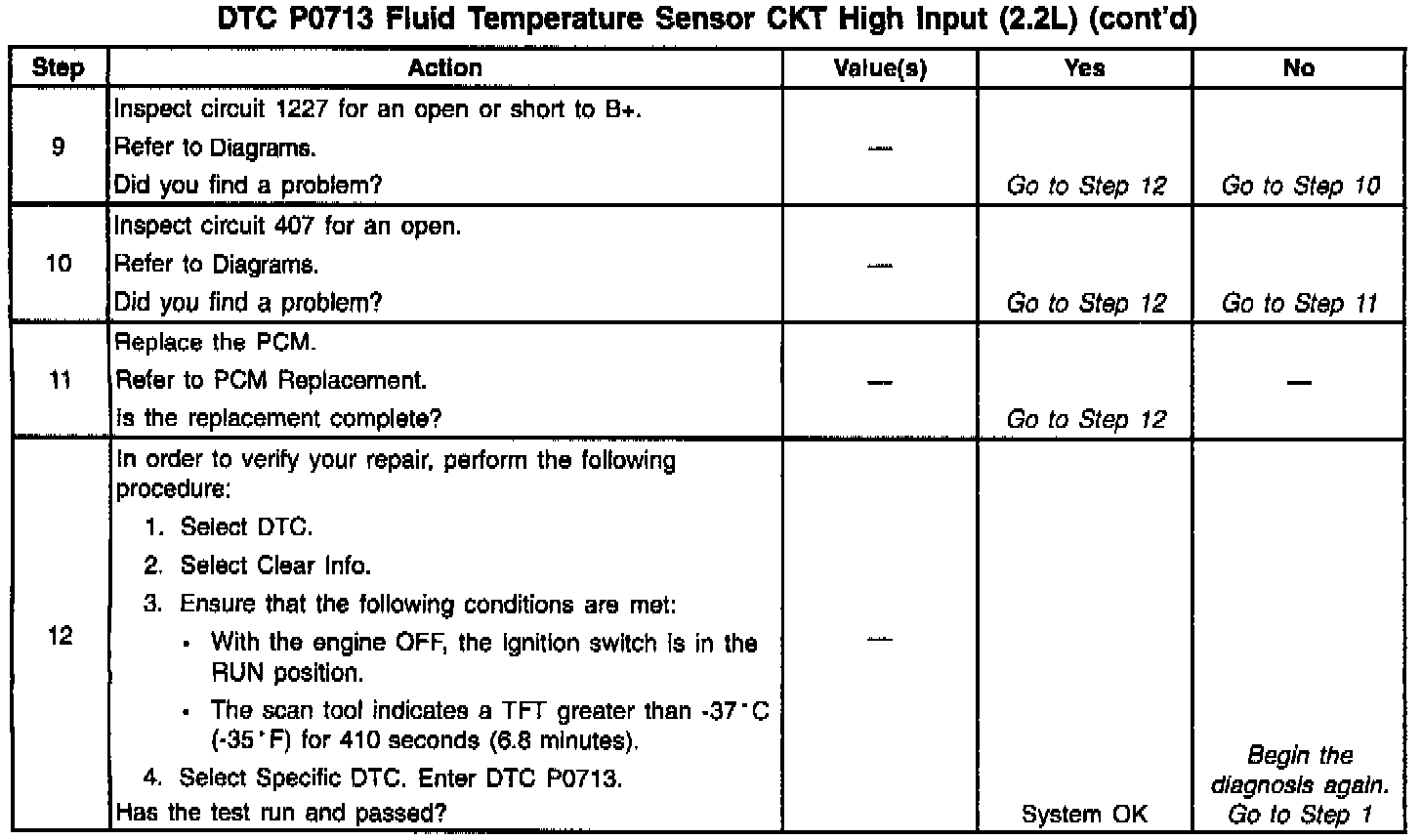 4. This step simulates a TFT sensor DTC P0712. If the PCM recognizes high temperature, the PCM and wiring are functioning normally.