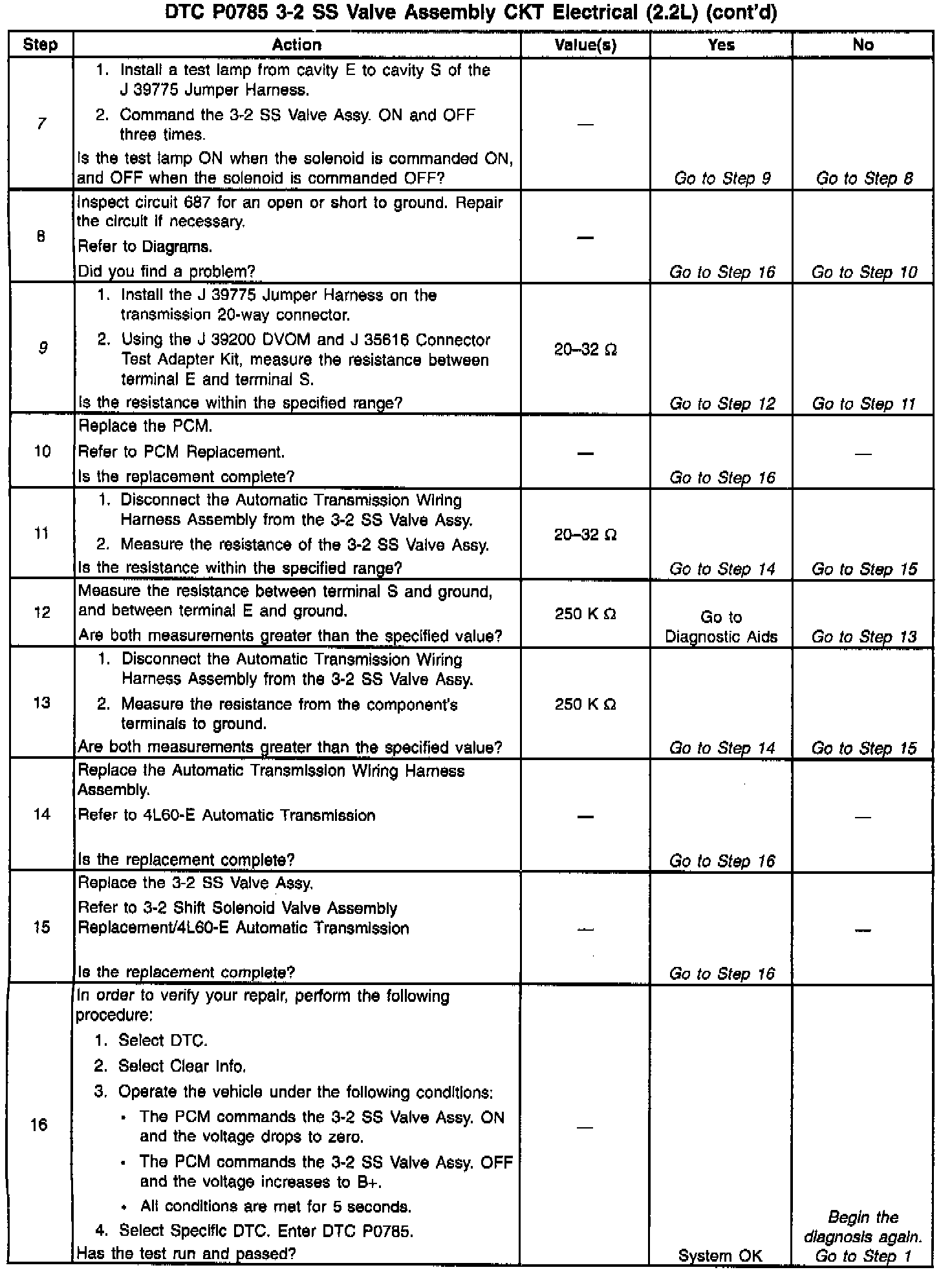 9. This Step tests the resistance of the Automatic Transmission Wiring Harness Assembly and the 3-2 SS Valve Assy.