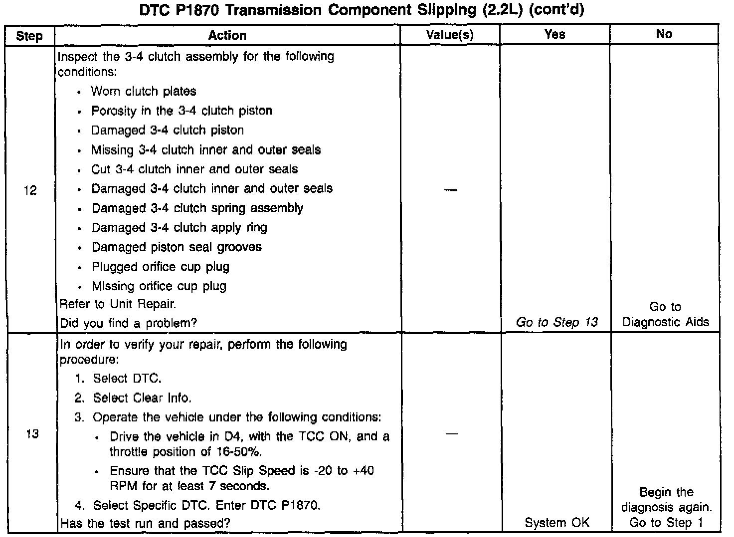 ^ Internal transmission failures could set DTC P1870.