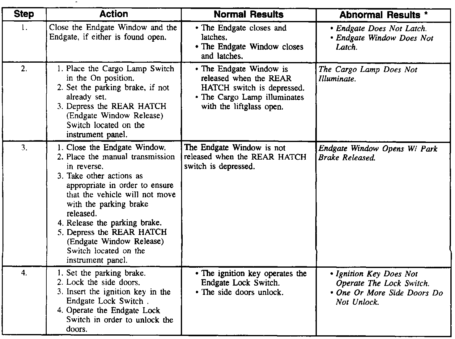 NOTE: If an abnormal condition is observed but it is not specifically listed for the step at which the condition was observed, then the Diagnostic System Check should be continued until the specific abnormal condition is listed. A particular abnormal result is not listed until all conditions that could cause that symptom are checked. The diagnosis for the normal result is based upon where it is stated in the diagnostic system check. A particular diagnosis may not work if it is taken out of sequence.
