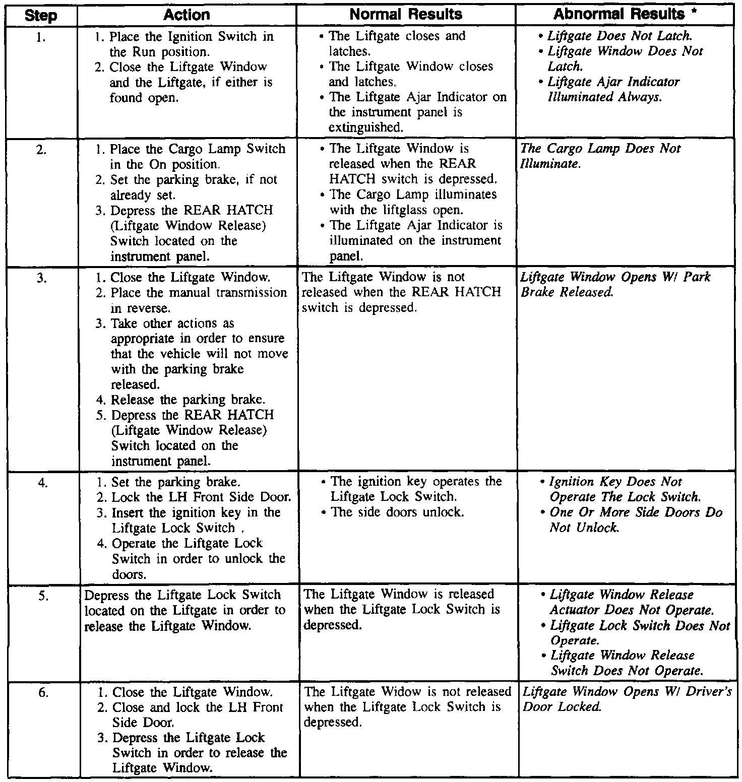 NOTE: If an abnormal condition is observed but it is not specifically listed for the step at which the condition was observed, then the Diagnostic System Check should be continued until the specific abnormal condition is listed. A particular abnormal result is not listed until all conditions that could cause that symptom are checked. The diagnosis for the normal result is based upon where it is stated in the diagnostic system check. A particular diagnosis may not work if it is taken out of sequence.