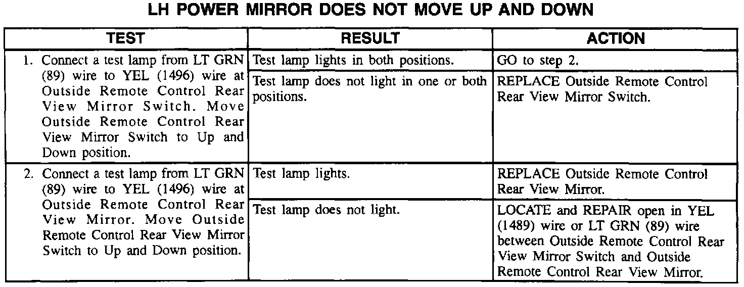 LH Power Mirror Does Not Move Up and Down
