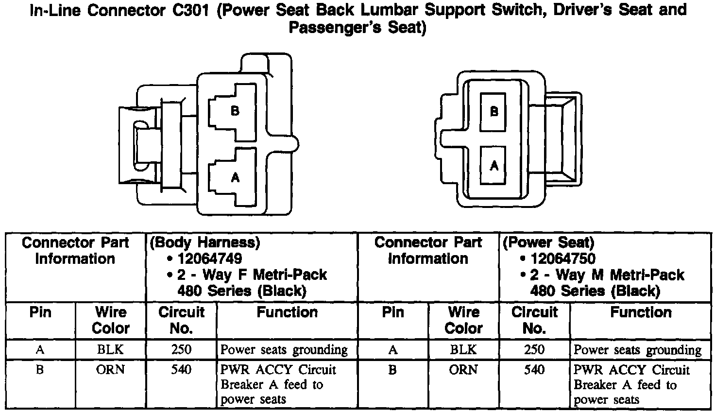 In-Line Connector: C301 (Driver's Seat And Passenger's Seat):