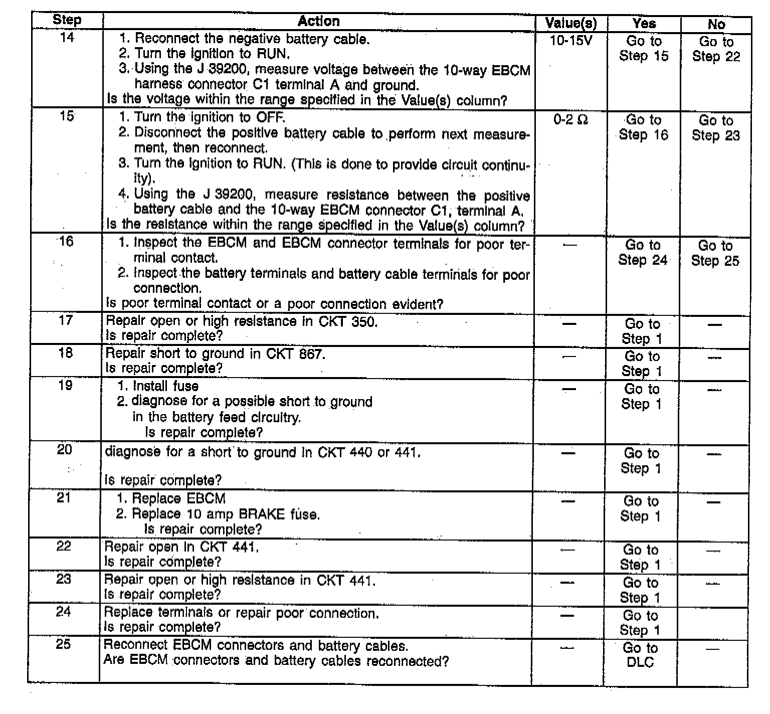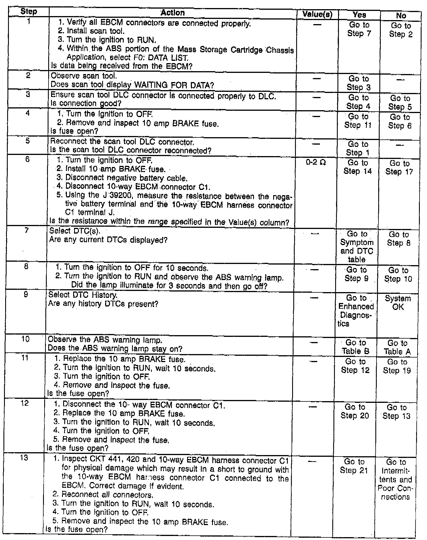 Excessive resistance in the ground or power supply circuits will not allow communication with the EBCM. If communication with the EBCM is not possible, ensure the ABS ground connection is good and that there is no excessive resistance in any of the power supply circuits.