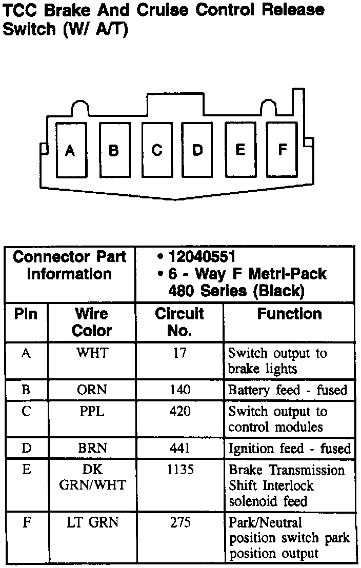 TCC Brake and Cruise Control Release Switch