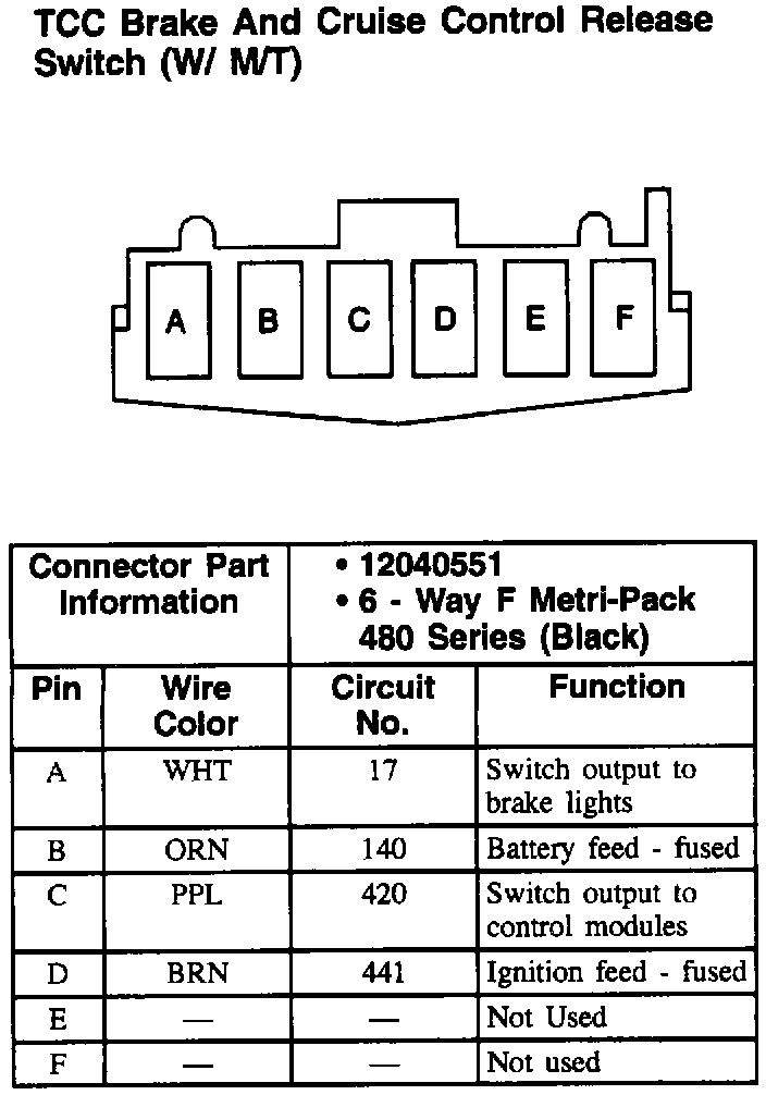 TCC Brake And Cruise Control Release Switch (W/ M/T):