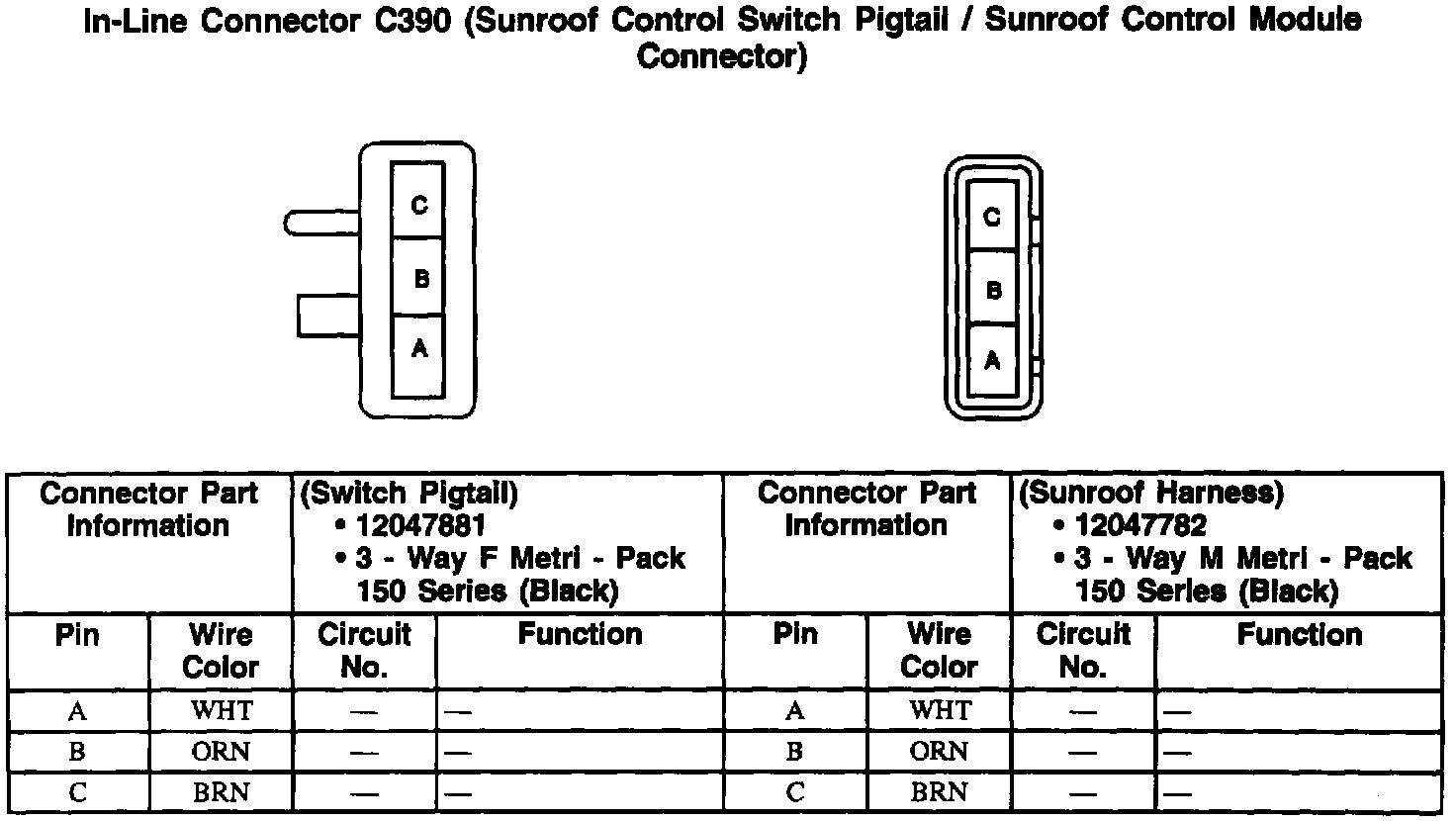 In-Line Connector: C390 (Sunroof Control Module Connector):
