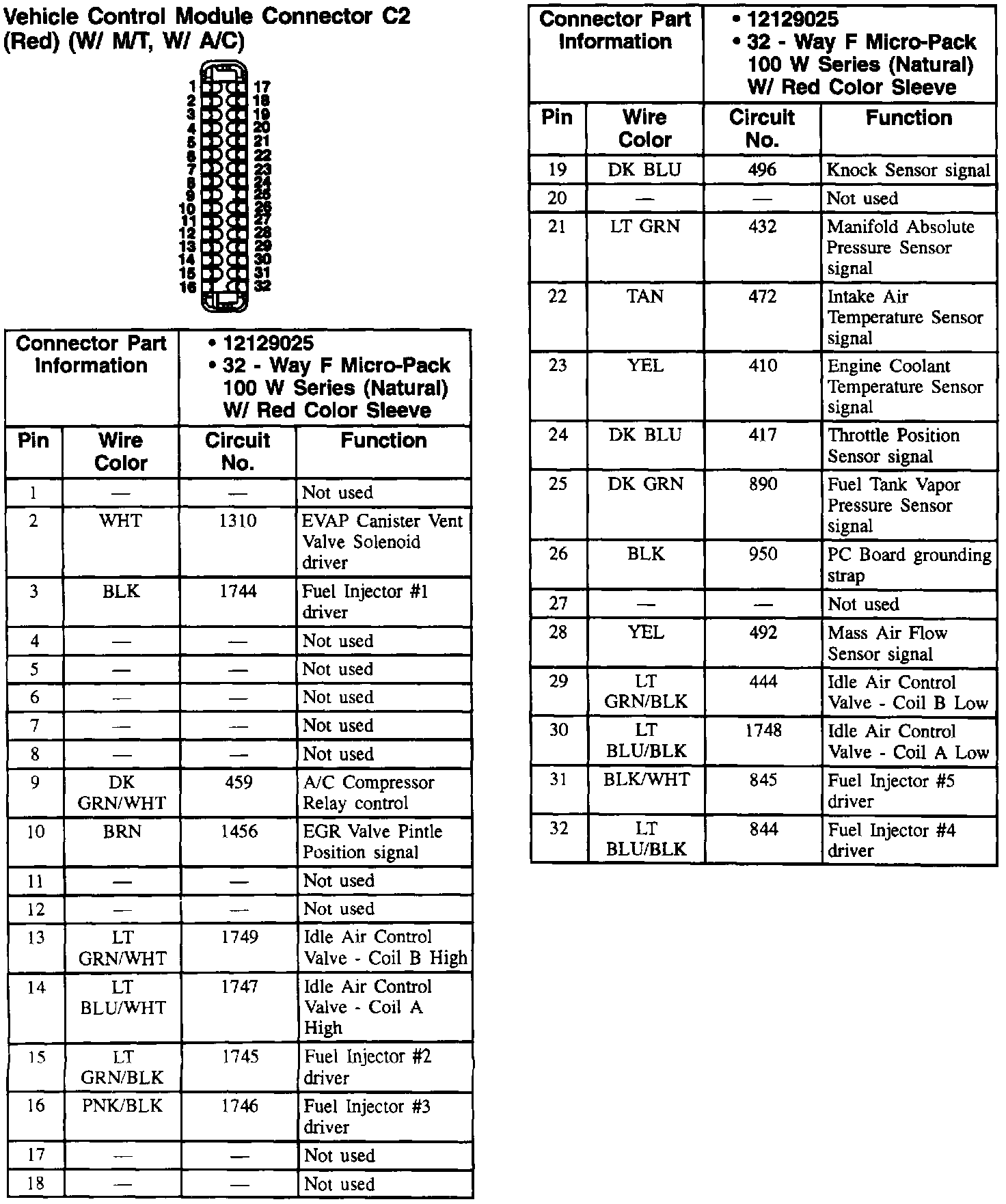 Vehicle Control Module Connector: C2 (W/ M/T, W/ A/C):