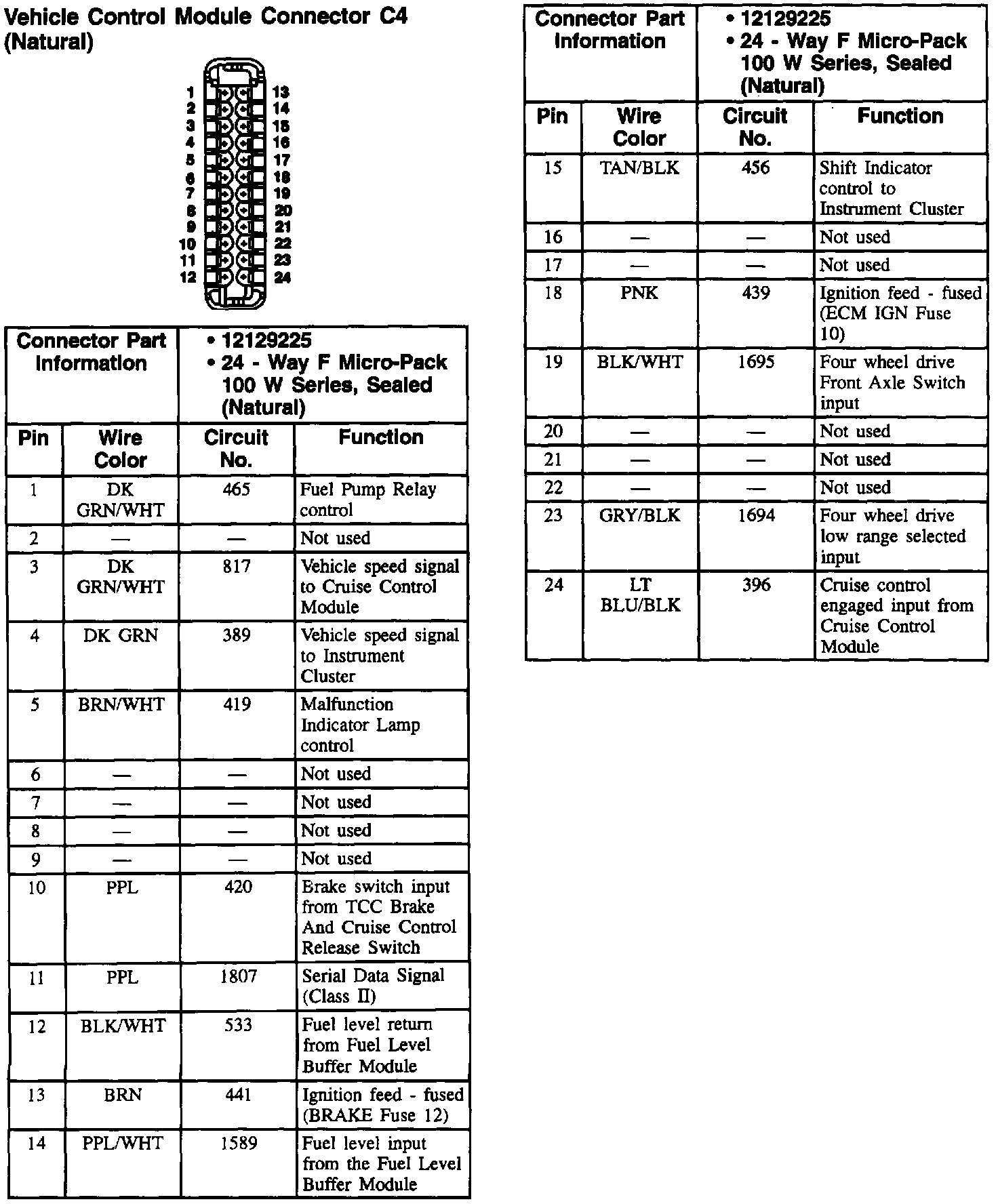 Vehicle Control Module Connector: C4 (Natural):