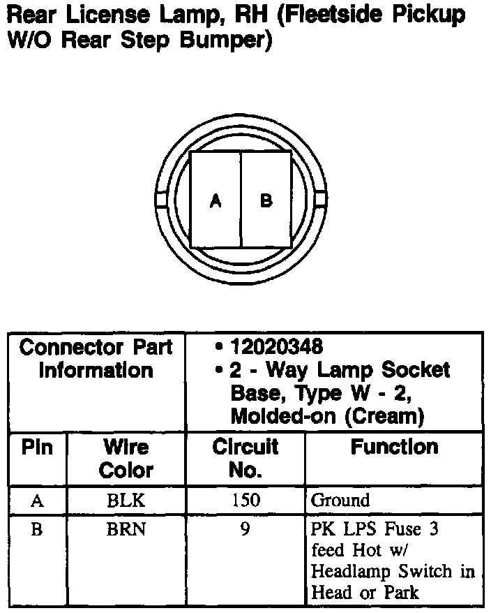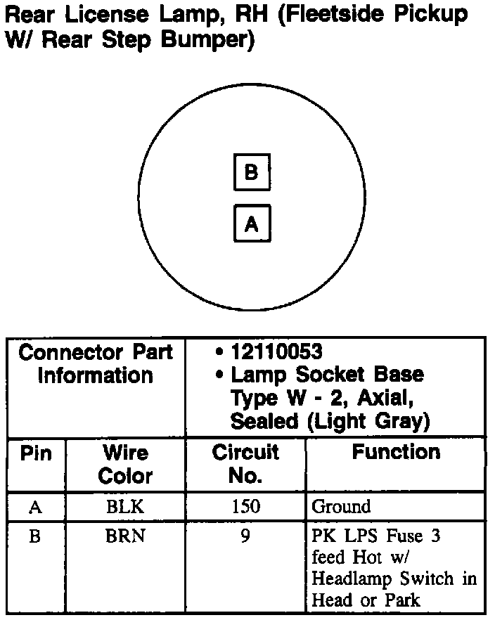 Rear License Lamp, RH (Fleetside W/ Rear Step Bumper):