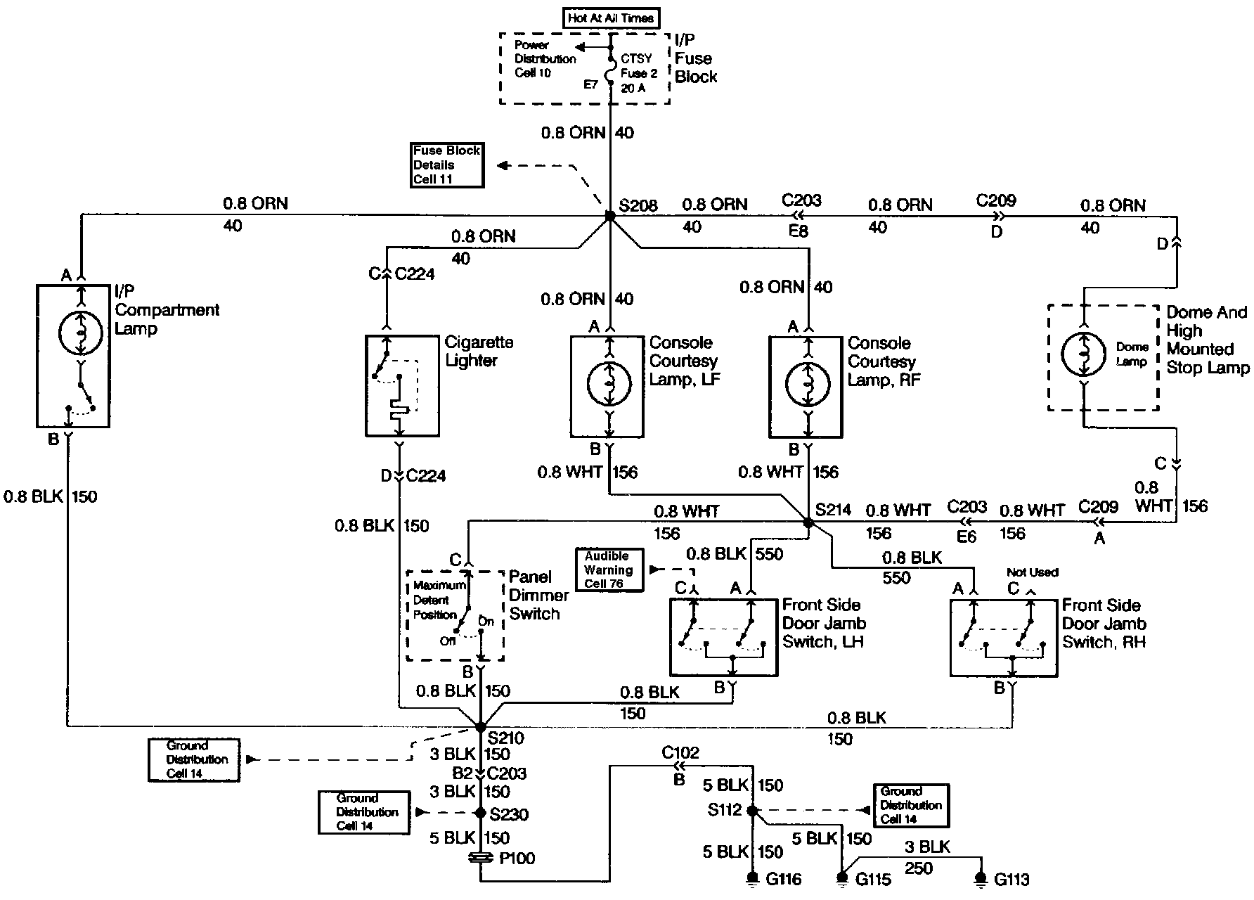 Dome, Console, Courtesy, CIG Lighter and I/P Compart Lamps