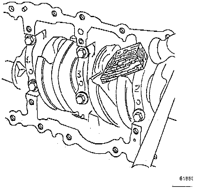 ^ Tighten the main bearing cap bolts first to 50 Nm (37 ft. lbs.).