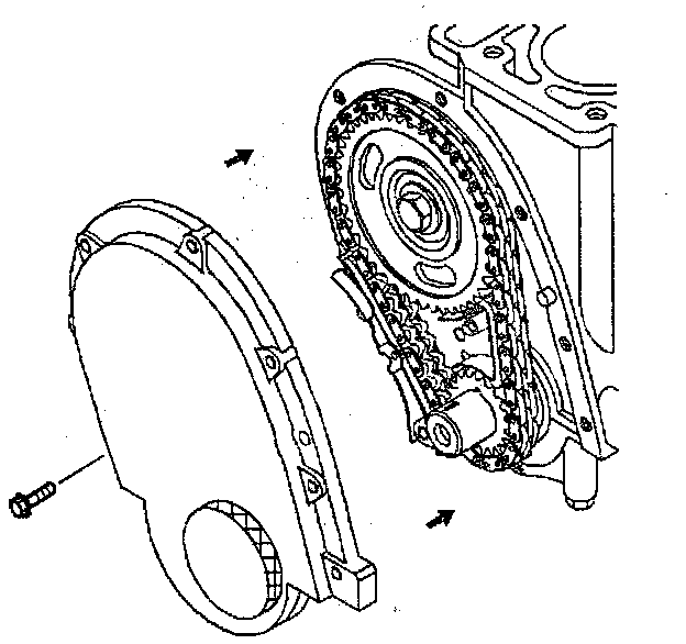 e. Install the timing chain tensioner. Do not tighten the timing chain tensioner bolts.