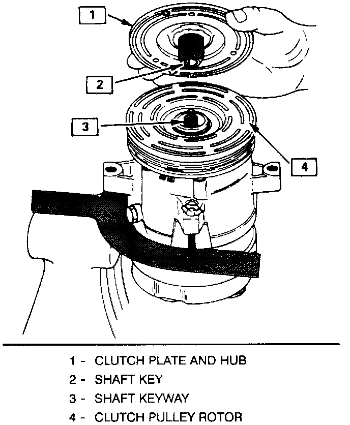 3. Align the shaft key with the shaft keyway and place the clutch plate and the hub assembly onto the compressor shaft.