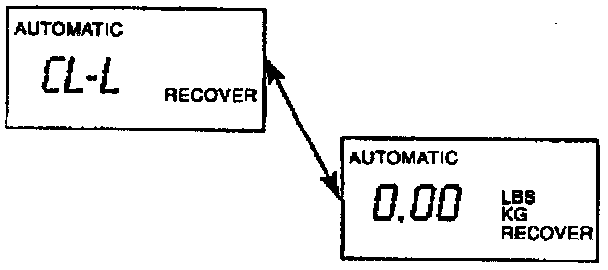 9. Press "RECOVER" on the key pad. Before recovery begins, the unit will clear itself of refrigerant. "CL-L" will appear on the display. The clearing process takes from 30 seconds to 3 minutes to complete.