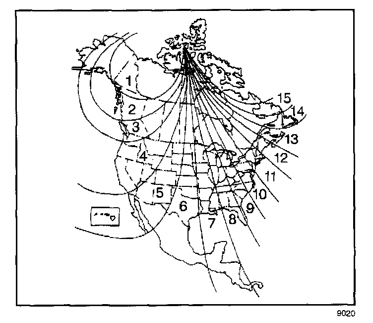 5. Press the US/MET switch until your zone number appears on the display.