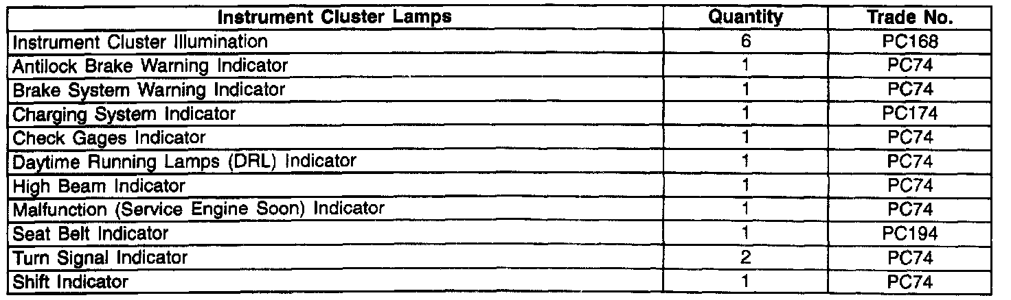 Bulb Usage - Interior Cluster Lamps