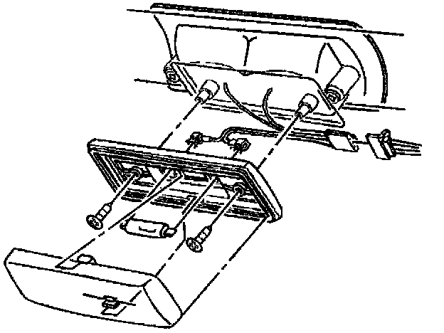 4. Screws that retain the dome lamp base to the CHMSL from inside the vehicle.