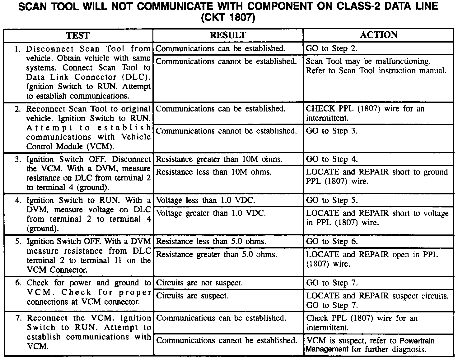 Scan Tool Will Not Communicate With Components On Class-2-Data Line: