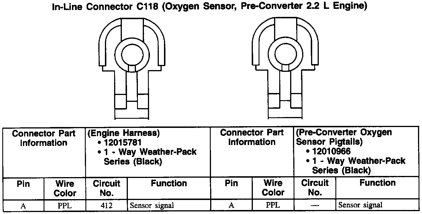In-Line Connector: C118 (Oxygen Sensor, Pre-Converter):
