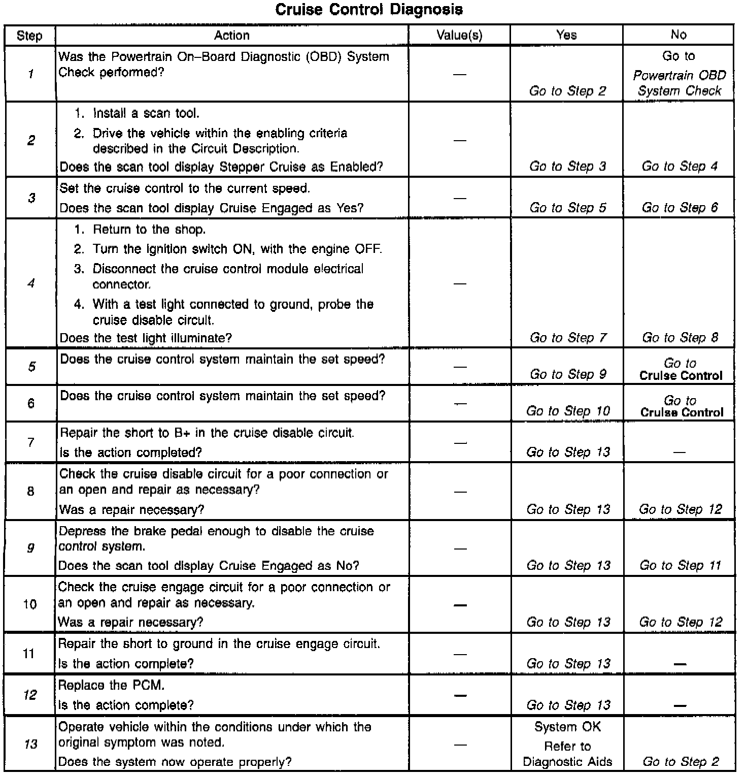System Diagnosis - Cruise Control