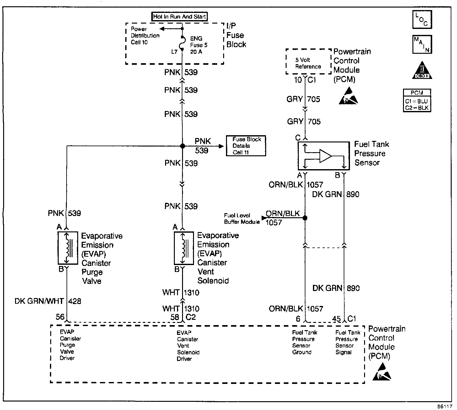 ^ A damaged harness. Inspect the wiring harness for damage. If the harness appears to be OK, observe the Fuel Tank Vacuum display on the scan tool while moving connectors and wiring harnesses related to the sensor. A change in the display will indicate the location of the fault.