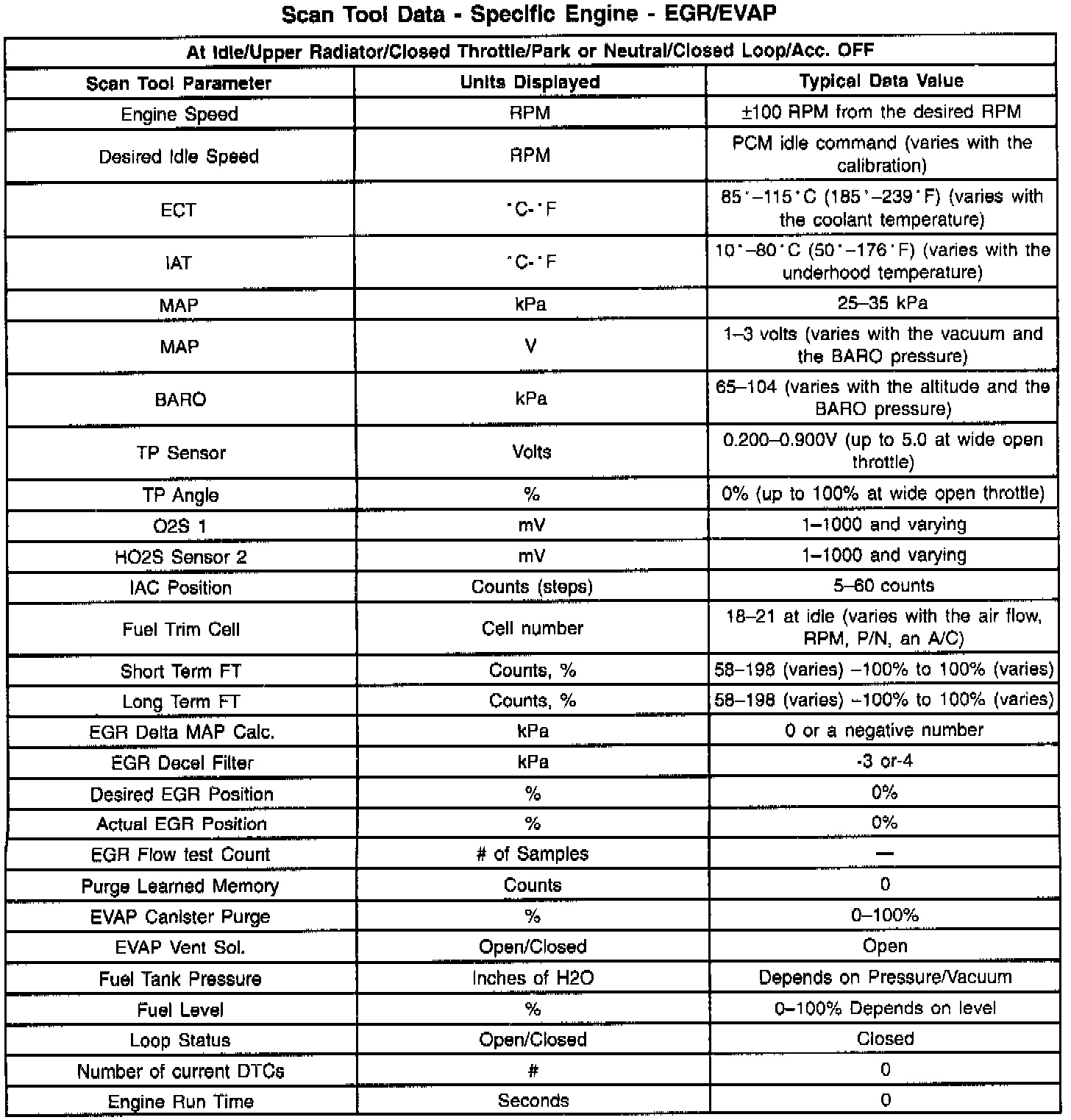 EGR/EVAP Data