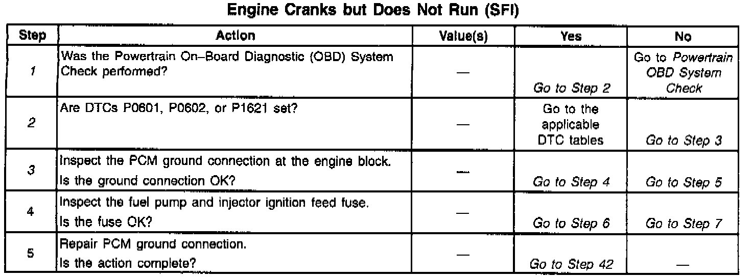 2. Diagnosis of DTCs that may be set could lead to the cause of the Cranks But Will Not Run condition.