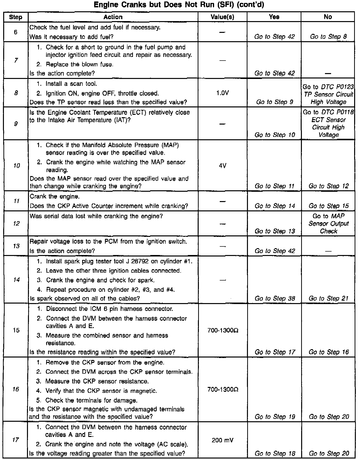 10. This step looks for a normal barometer reading and a change in MAP sensor values while cranking the engine. This step verifies the MAP sensor can detect the change in the manifold pressure that occurs while cranking the engine. Compare any questionable barometer readings with readings from another vehicle.